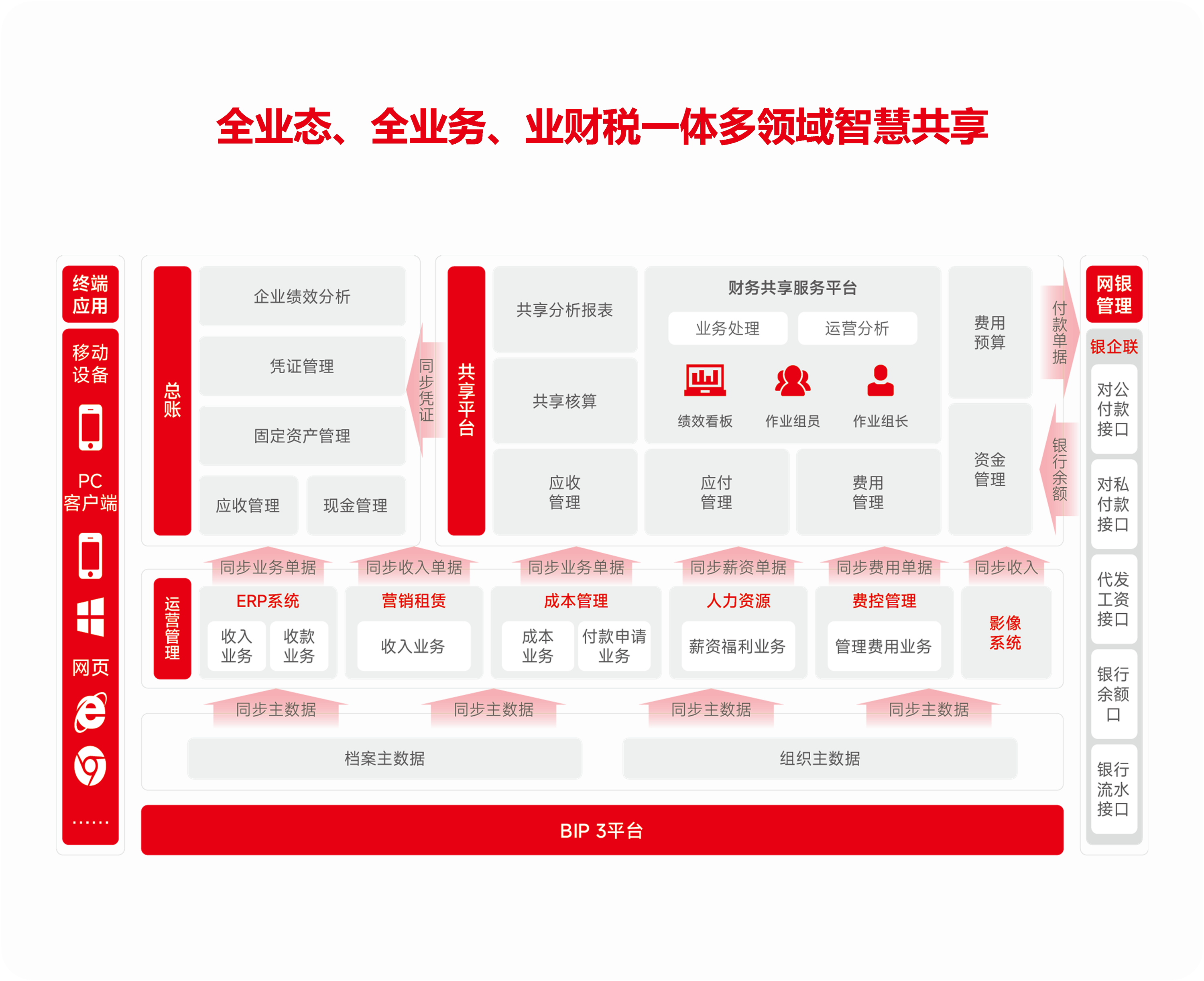 以“构建业财融合、数据驱动的价值创造型财务”为目标,基于新一代数智化技术构建一流财务管理体系,提供包含技术底座、体系完整、基于事项会计中台的业财融合解决方案,实现业财与流程、数据、管理的全方位融合,赋能企业全面的效率提升、价值创造,也为数字化、智能化运营奠定坚实的基础。