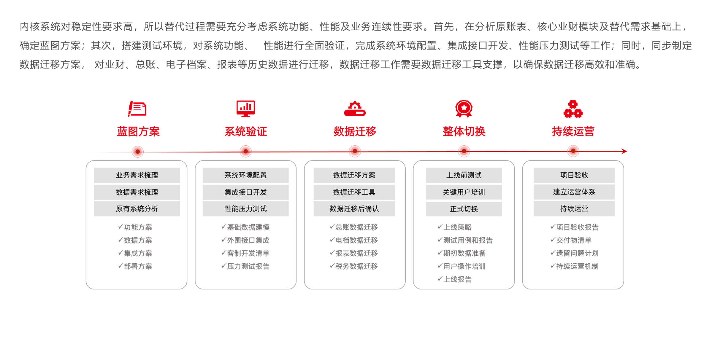 中国人寿的ERP系统替代是整个金融行业加快自主可控、加速数智 化转型的必须选择。其SAP系统在2007年建设,积累了大量的数据、 个性化功能,集成了复杂的业务系统。与用友合作中,从金融企业 最为关心的财务域开始,并对新系统的技术水平、性能、管理等提 出了更高的要求。