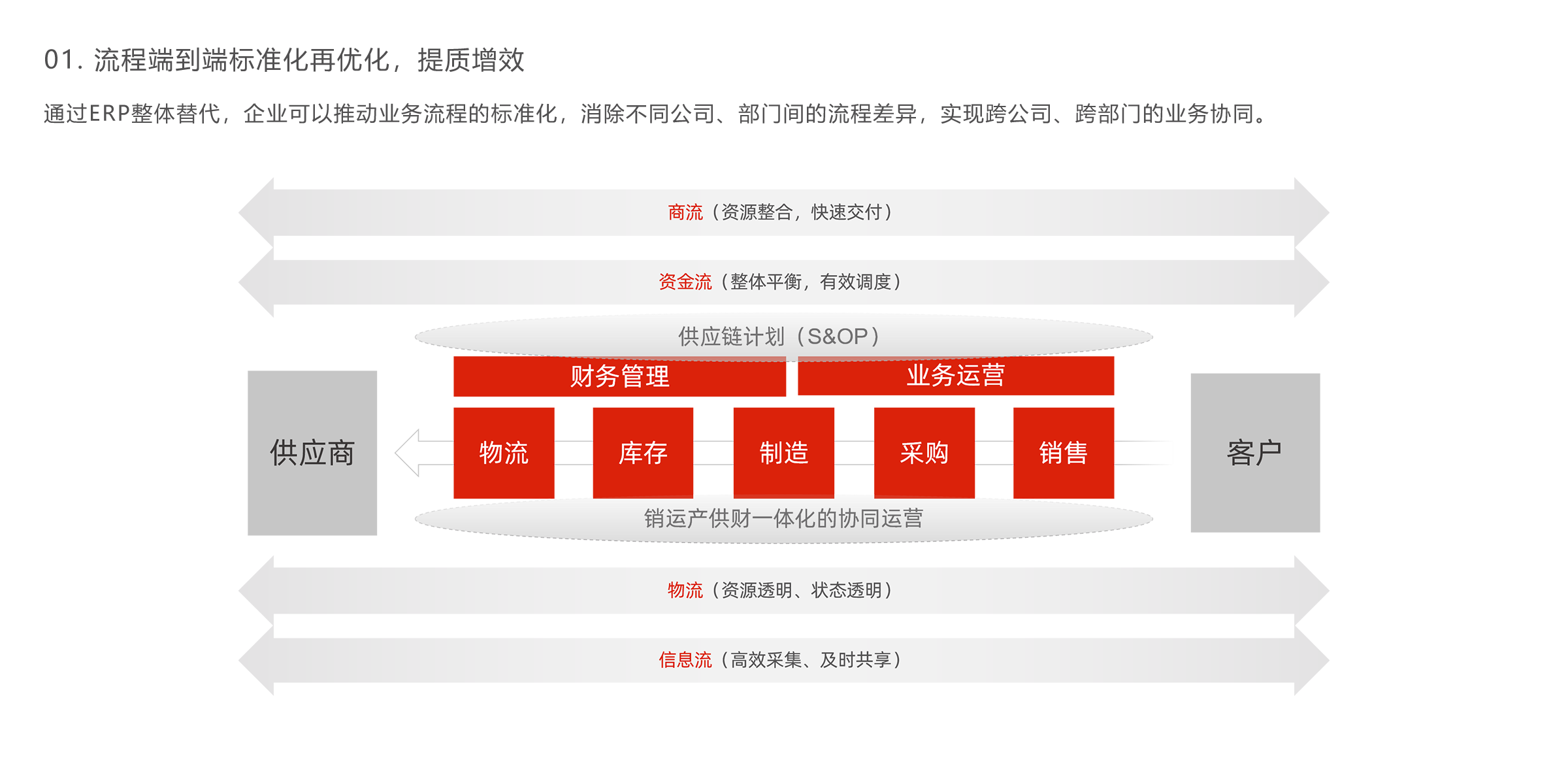 中国物流集团是物流贸易行业基于用友BIP平台搭建一体化解决方 案的典型代表。在总体蓝图设计的基础上,针对物流服务和贸易两 个板块分别进行了行业化解决方案设计实施。目前,完成了对SAP 及其他若干异构系统的整体替代,并且分批次完成上线。